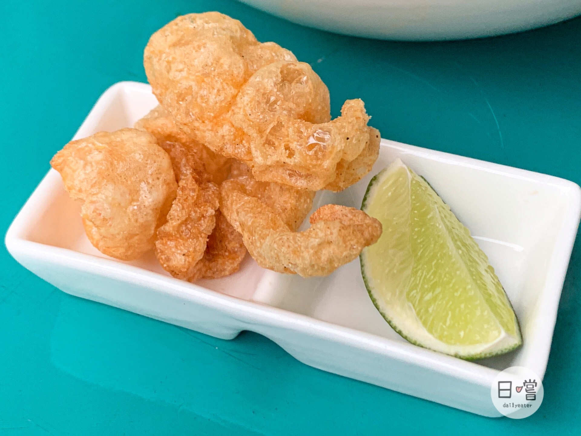 麵還有附上炸豬皮跟檸檬