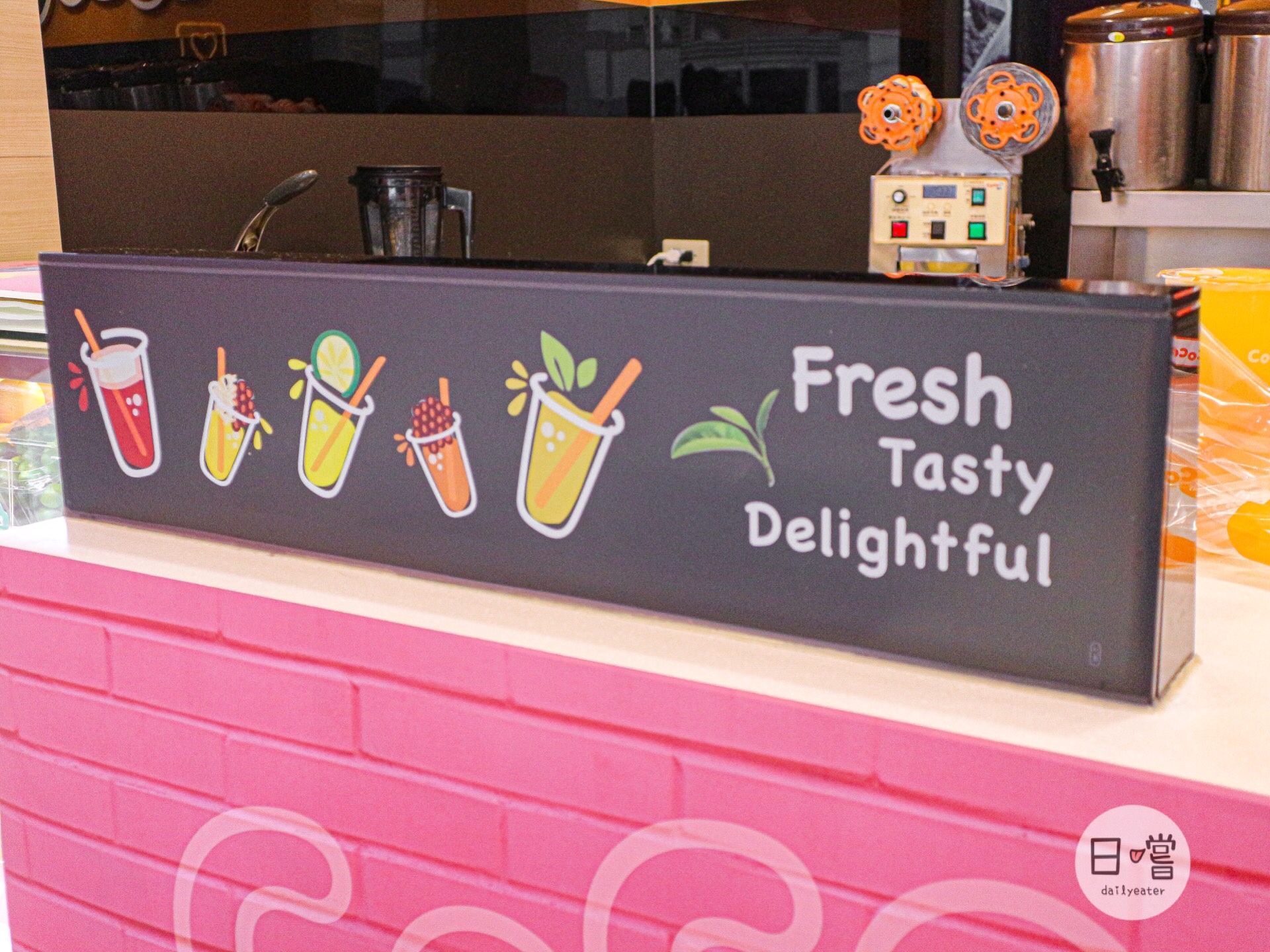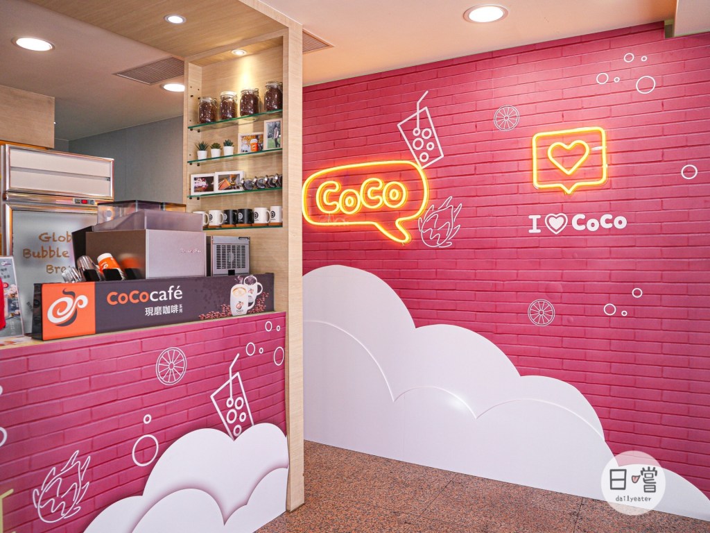 今天喝的CoCo位於桃園火車站的附近,店內走一個粉紅風格!