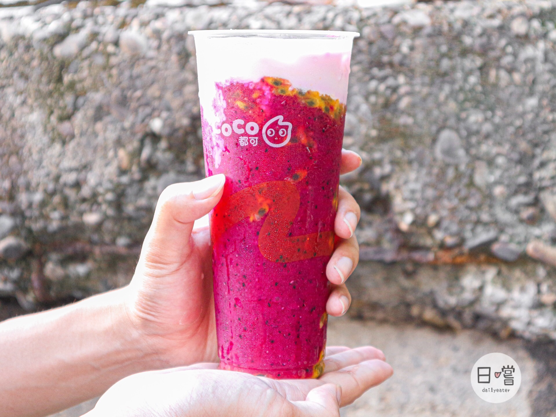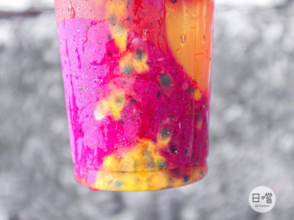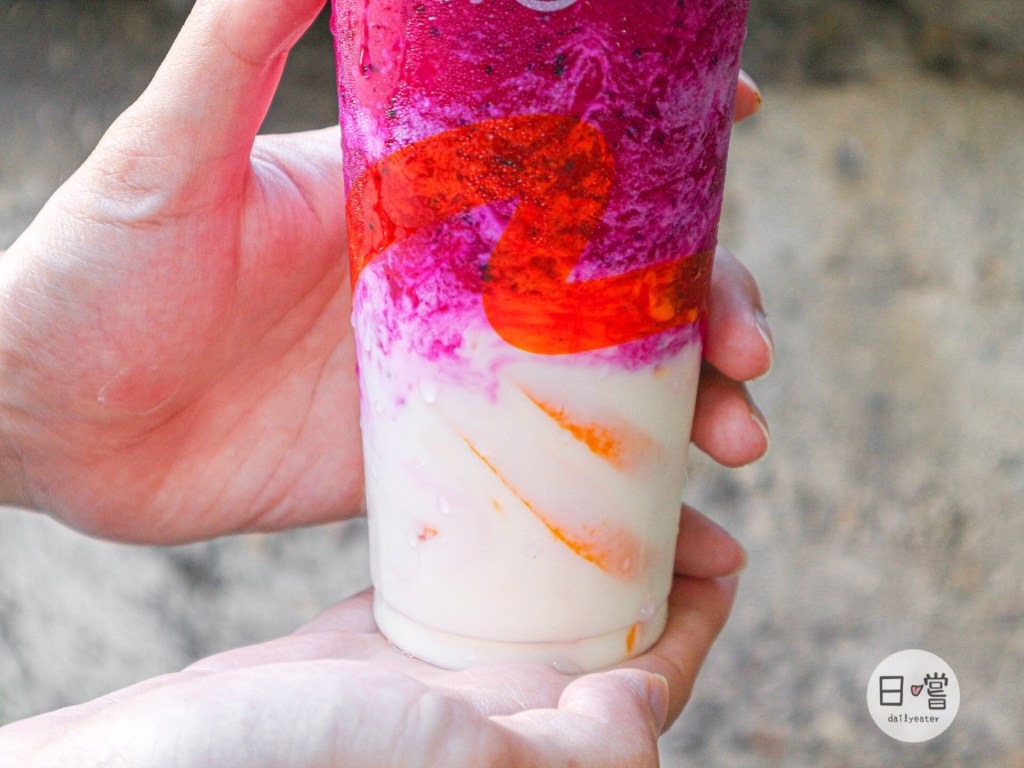 這款除了百香果、牛奶跟火龍果外,裡面其實還有口感滑順的蜜香凍