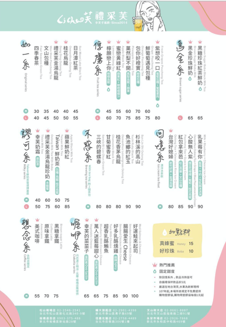 紫香咬一口($80)、桂花烏龍($50)