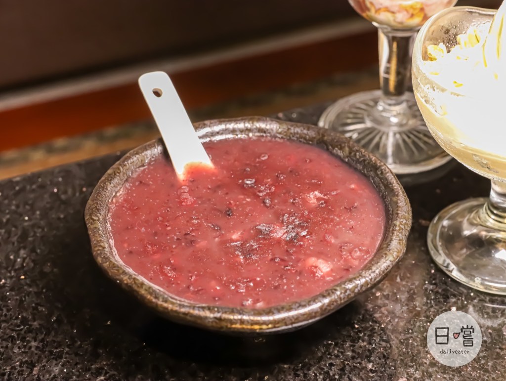 紫米紅豆湯是熱甜點,屬於比較不甜的品項