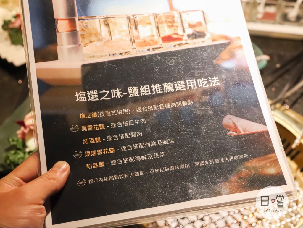 不同的鹽沾著不同的肉品,店員會在一開始介紹