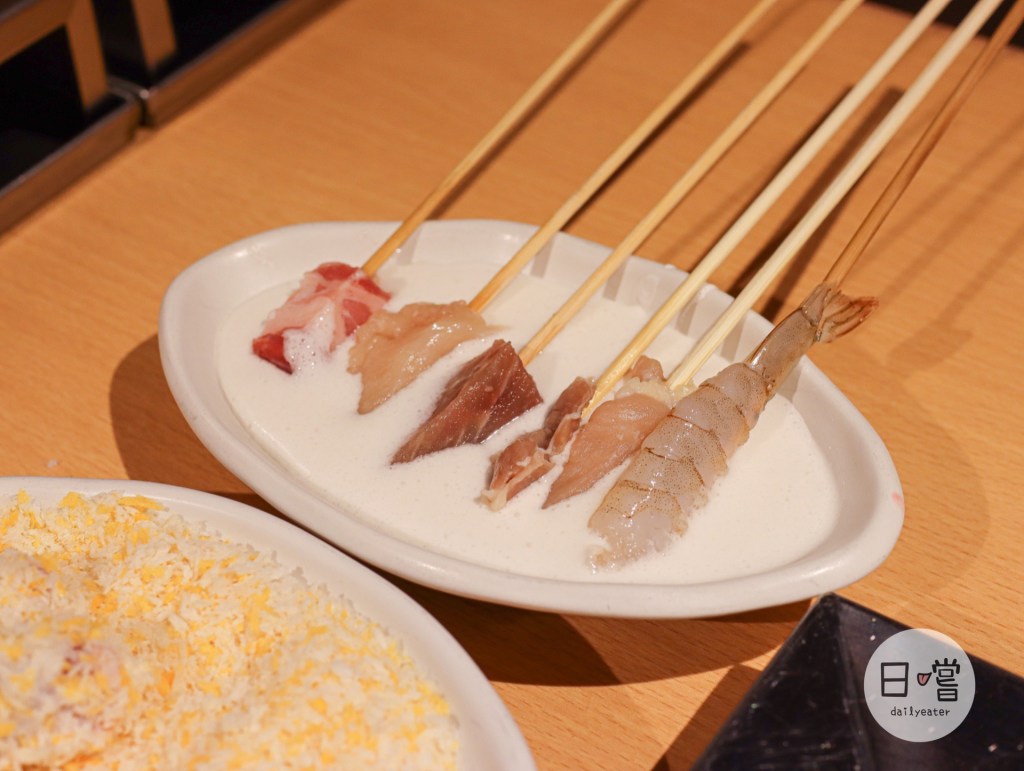 除了蔬菜、肉類跟一些串炸小物,串家物語這邊還有提供茶泡飯的服務!平常很少在餐廳體驗到的類型,像是茶泡飯就可以自己動手做