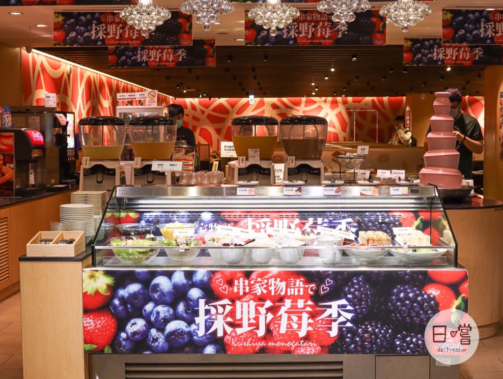 才剛到門口就大大寫著採野莓季,邊吃串炸還有莓果甜點可以搭配很幸福😍