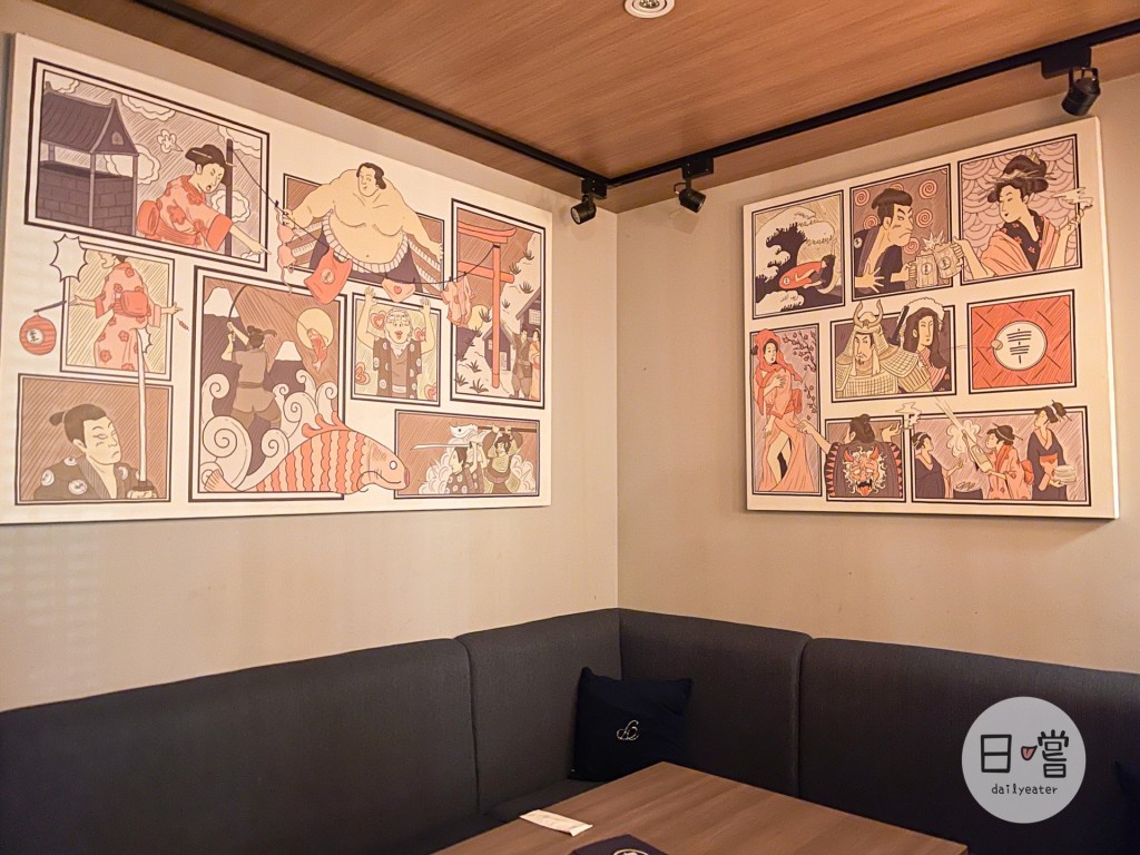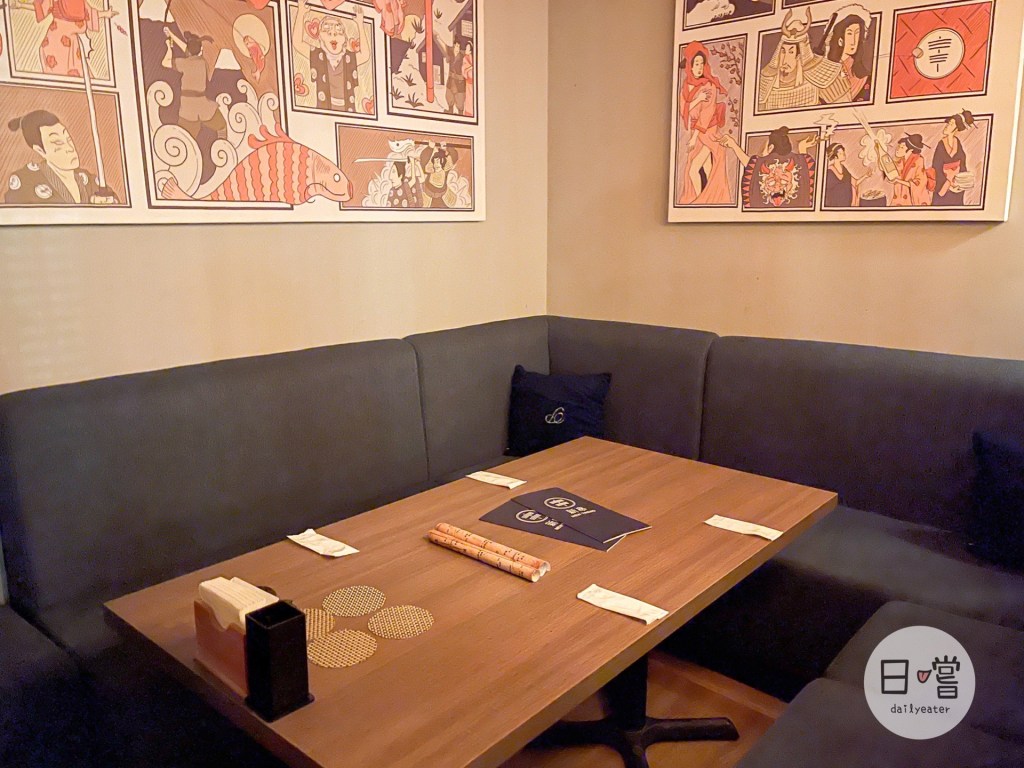 除了前面的吧台,新串也有一般座位區跟獨立包廂區,充滿復古新意的壁畫也讓人覺得十分放鬆😆