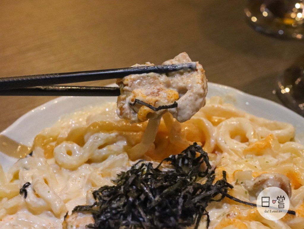 這道是新串的招牌菜,烏龍麵本身的口感非常Q彈,麵條把醬汁整個包覆其中,每一口都有滿滿的奶香,明太子也很濃郁