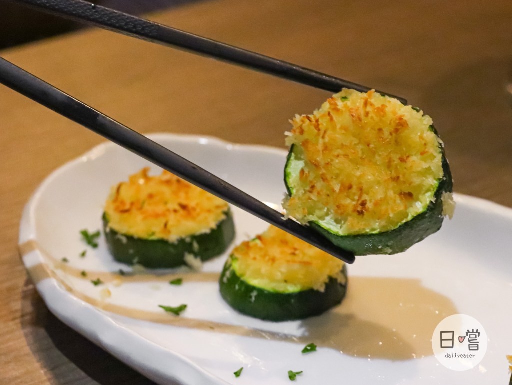 櫛瓜又脆又甜,上面還灑了蒜香十足的酥脆麵包粉,口感十分豐富