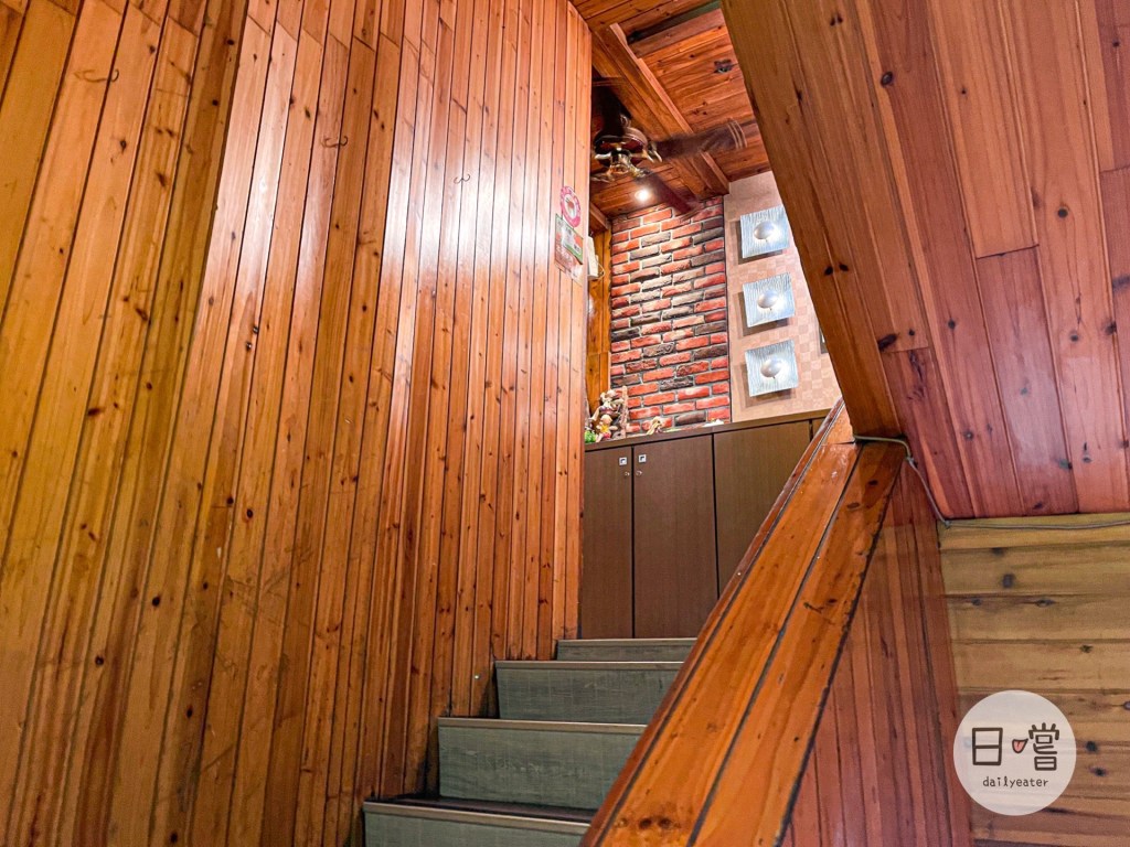 樓梯及入口用大量的木頭作為建築基材,頗有古色古香的風味