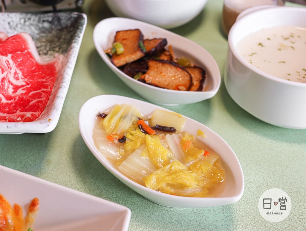主食的部分也有滿多種選擇,飯類還有湯品、小菜跟甜點:火鍋的配料、肉品吃起來也有飽足感