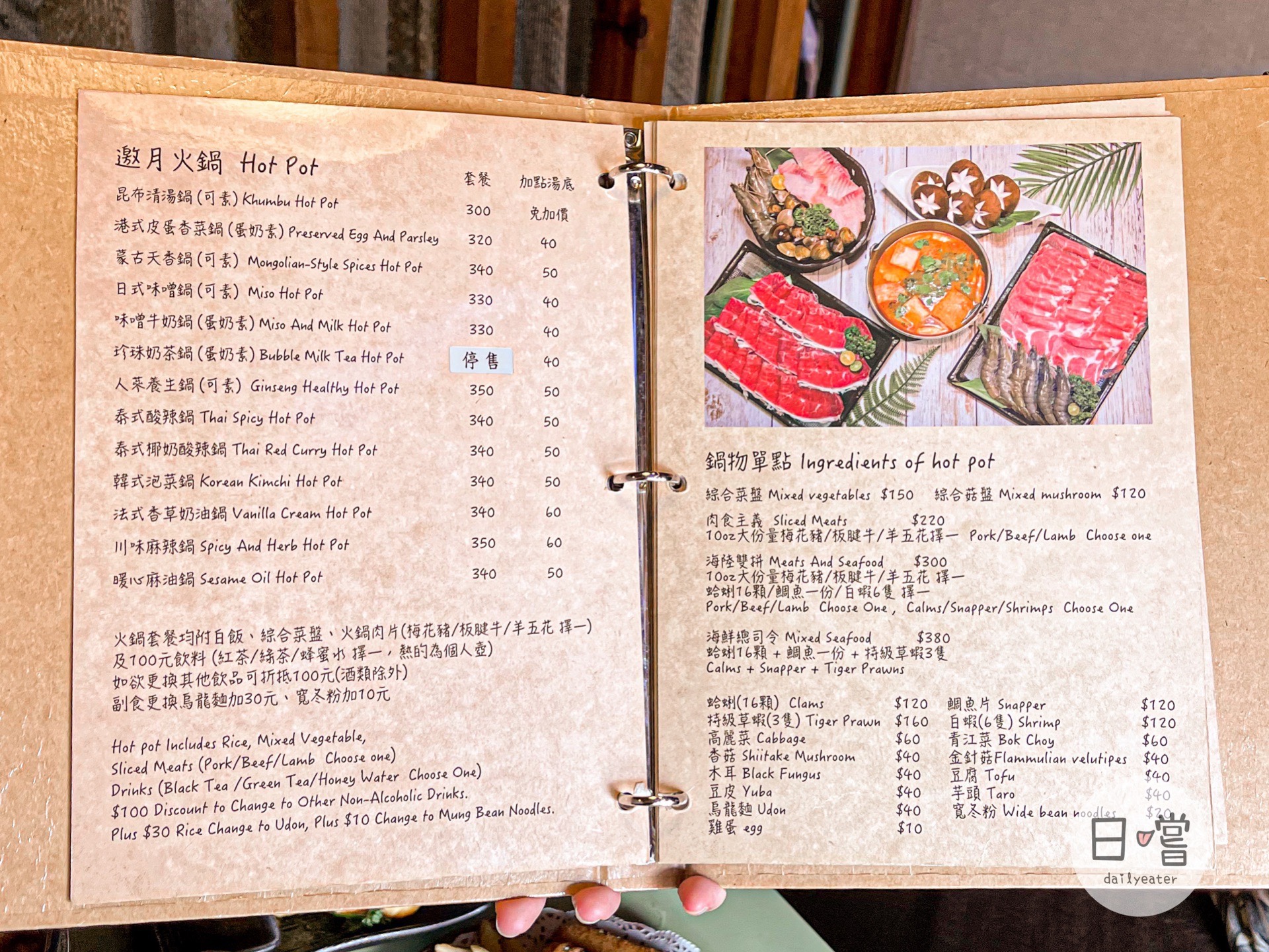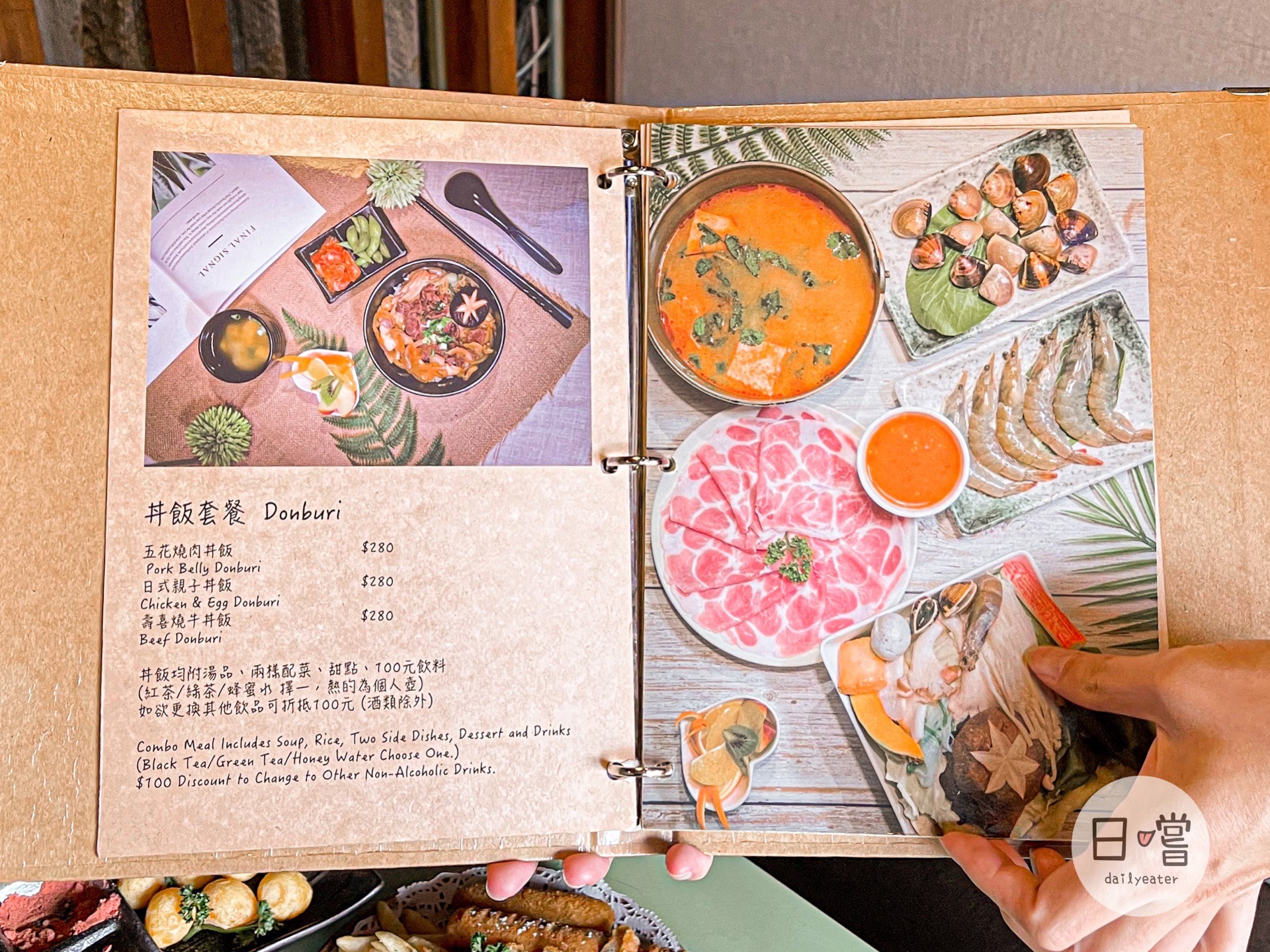 無論點飯食、丼飯或是火鍋的套餐,都會有附100元的飲料。如果本身想要其他飲料(非酒類)的話,可以折抵100元還滿划算!