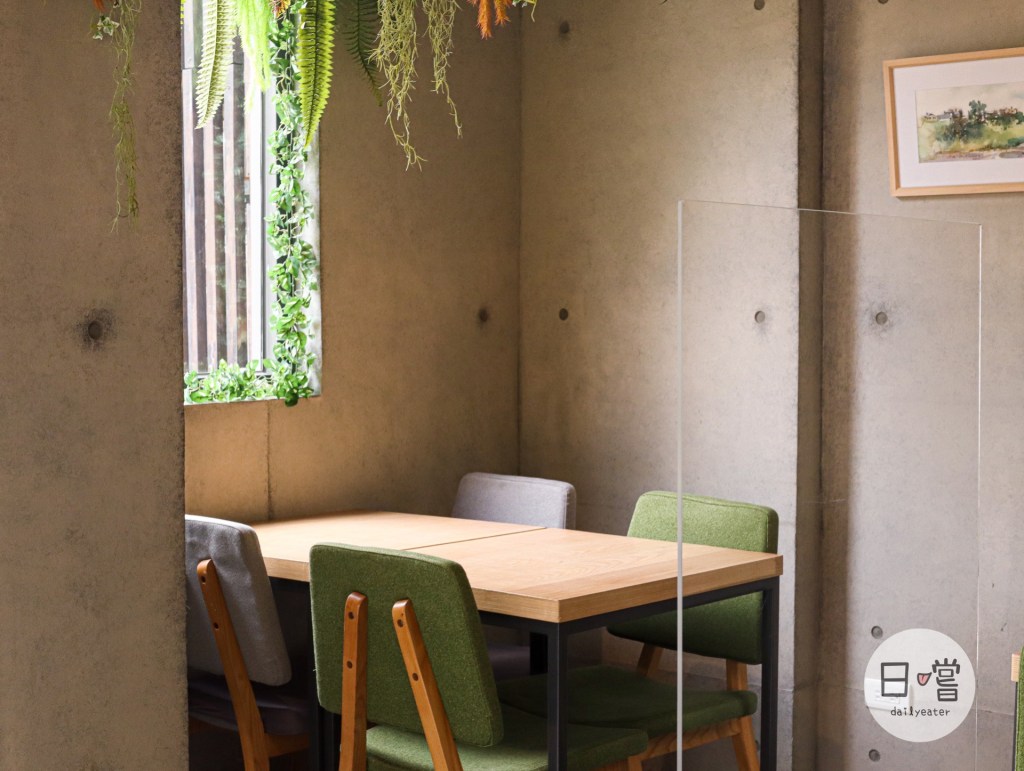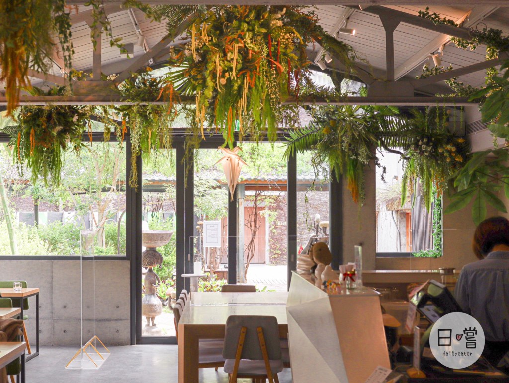走進餐廳裡面,發現裡面也是一片世外桃源!各種植栽裝置在餐廳內,裡面的植栽是裝飾不是真的植栽,除了美觀之外也是預防一些蚊蟲的打擾