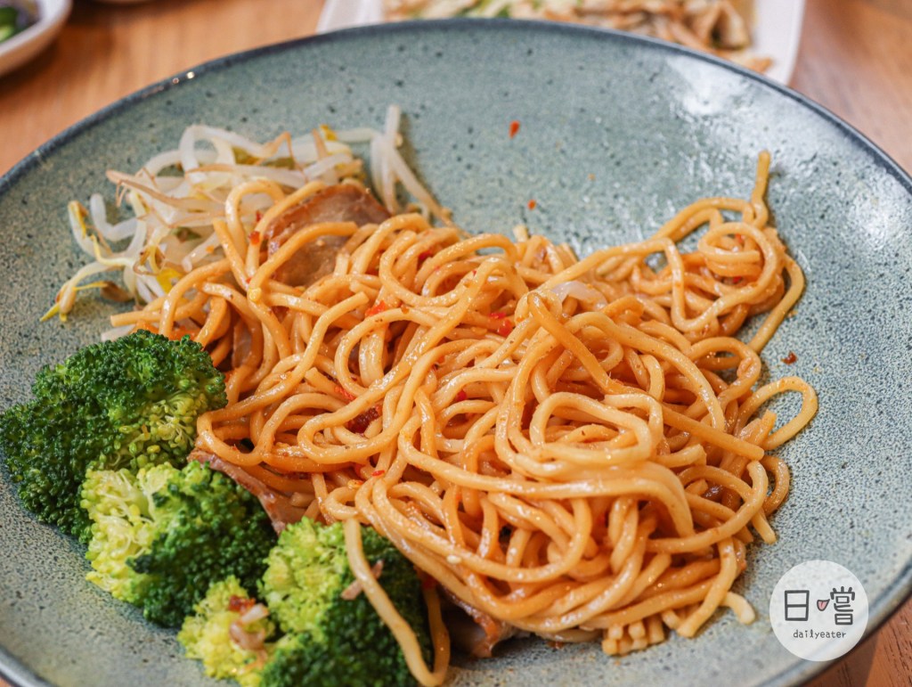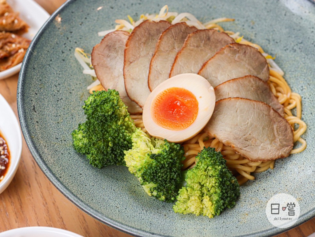 主角乾拌麵出來了😋光視覺看到就超級吸引人的啊!除了滿滿的豬肉片、麵體外,還有花椰菜、豆芽菜跟溏心蛋作為點綴