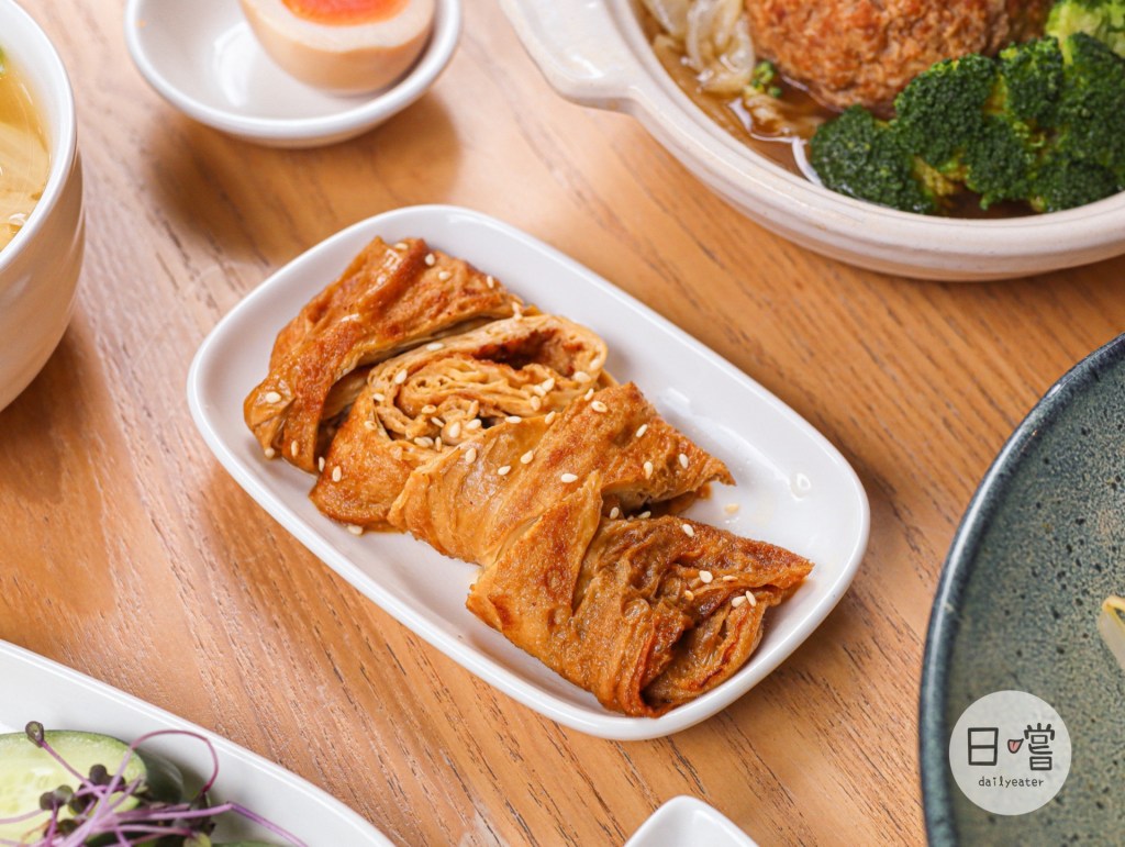 除了主食外,一碗來也有提供一些小菜可以選擇!他們家豆皮滷的剛好,咬下去滷汁從豆皮湧現,是道很有水準的小菜