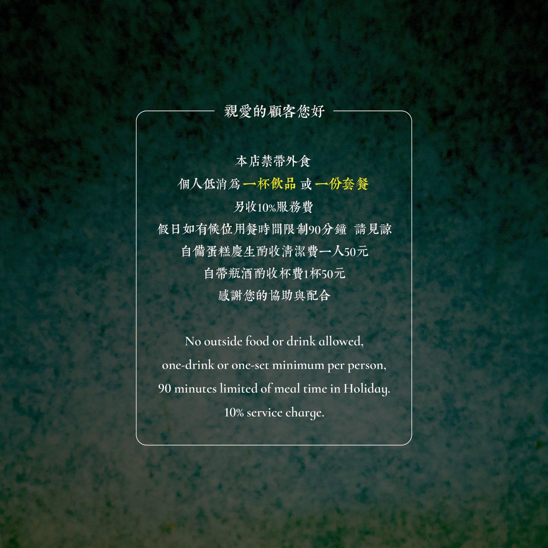 ✏️低消一杯飲品或一份套餐