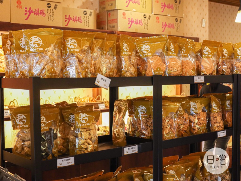 走進去店內有各種古早味零食,菜脯餅、地瓜酥、麻荖甚至是綠豆糕,完全是小時候的回憶🤤