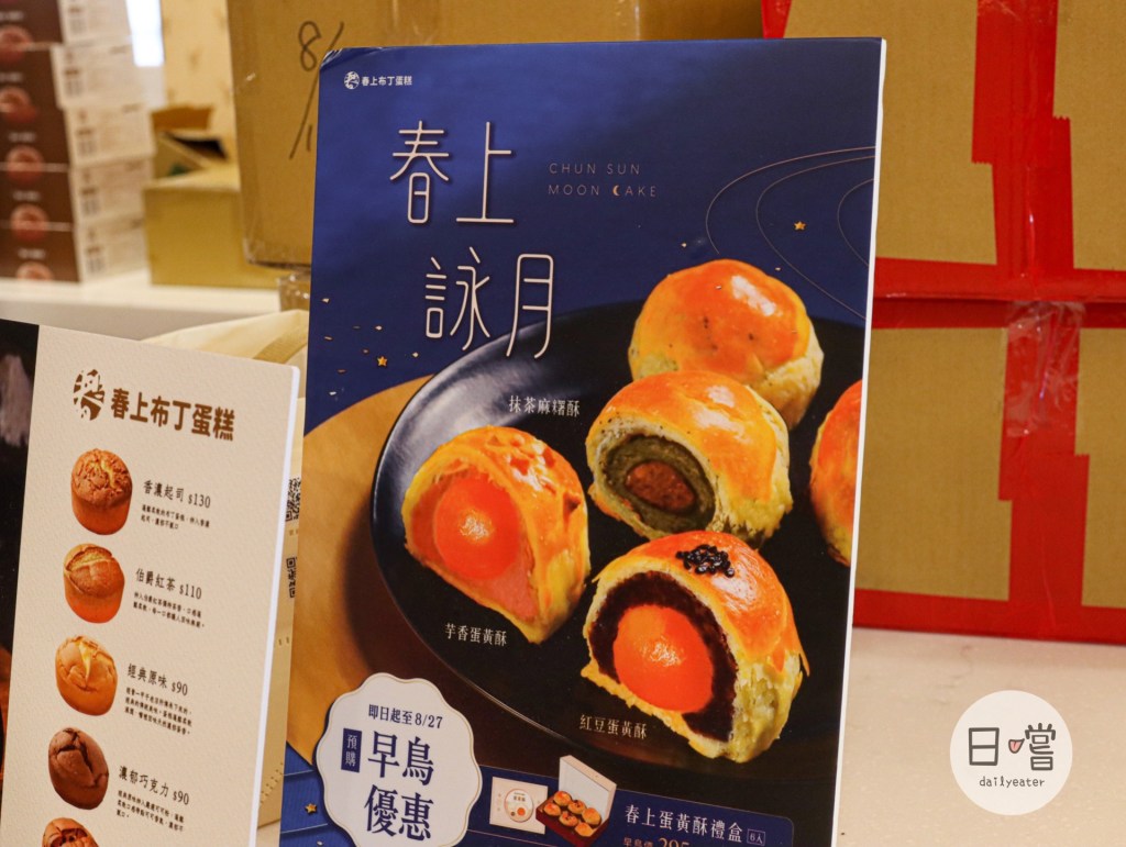 看到店內介紹了這次新推出的禮盒,春上詠月!除了常見的紅豆蛋黃酥外,還有芋香蛋黃酥跟抹茶麻糬酥😆