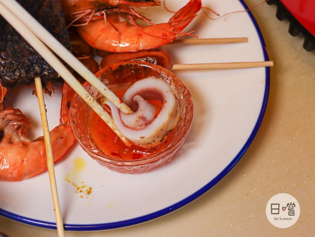 必須說,使用沙茶醬來醃肉真的是以前沒有嘗試過的!實際上醃肉後覺得醬有讓肉的味道更加提升😆而咖哩炒醬還有泰式甜辣醬更是不可或缺的一部份😍如果本身愛吃海鮮的一定要沾沾看泰式甜辣醬,那清爽的口感絕對是讓人意猶未盡👍