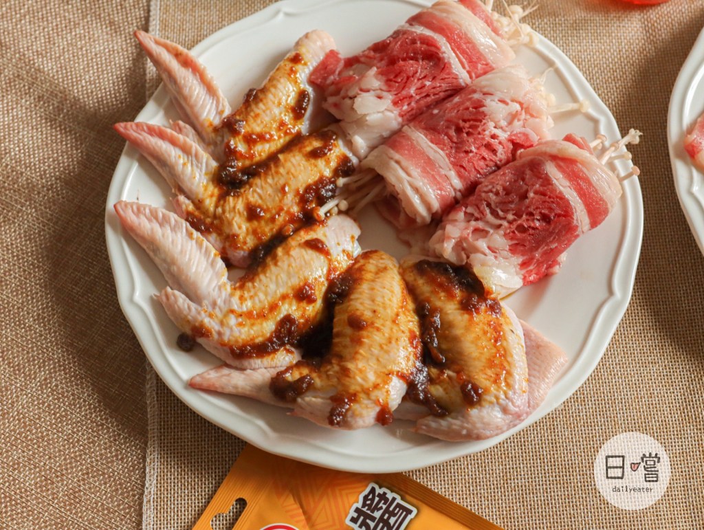 前面提到這次使用的不是一般烤肉醬,而是沙茶醬等醬料😆到底該怎麼料理呢?在沙茶醬跟咖哩炒醬的部分,個人主要是拿來醃肉😋將醬塗抹上去後放置一段時間就會讓肉變得更有味道!甚至在烤的過程中可以把醬塗抹上去,就跟使用烤肉醬的用法一樣!又或者是先將食材烤了之後再沾上將也是不錯的選擇~