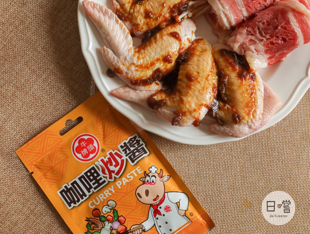 雞翅跟牛肉片則是使用了咖哩炒醬,一打開醬包滿滿的咖哩香撲鼻😍之前只有吃過牛頭牌沙茶醬,他們家的咖哩炒醬是第一次嘗試,所以也特別期待😆