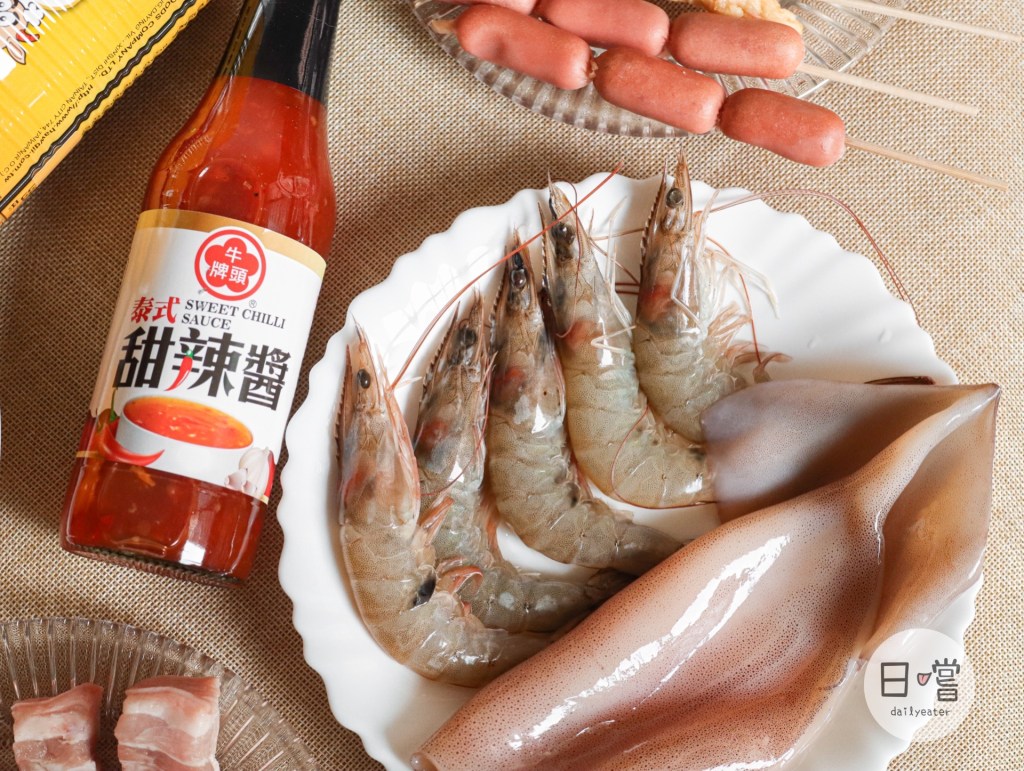 除了沙茶醬、咖哩炒醬,讓我很驚豔的是牛頭牌也有出泰式甜辣醬!講到甜辣醬當然是要跟海鮮一起搭配😋這次把海鮮直接下去烤,考完沾了甜辣醬之後超級讚❤️鮮甜的海鮮搭配酸酸甜甜的醬汁吃起來很清爽,吃完一當下,馬上叫家人再去買兩三罐回來備著😆