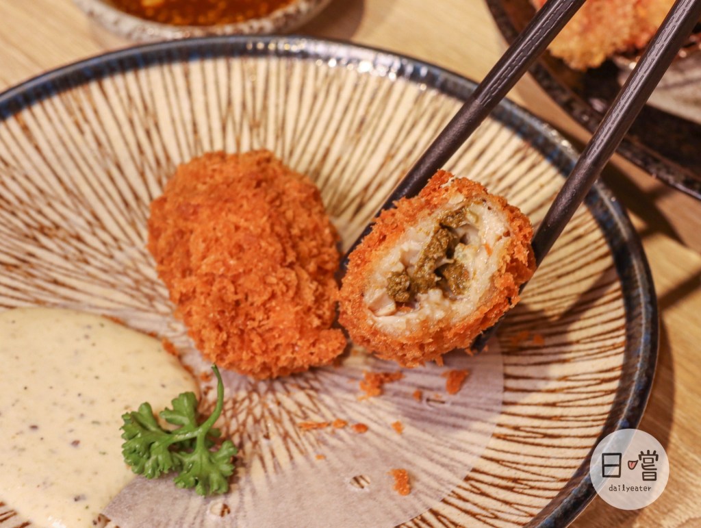 炸牡蠣這道的外皮酥炸得很讚,就算放冷了也沒有油耗味!咬開外皮之後,內餡的牡蠣味道慢慢地暈散開來能吃出牡蠣的鮮與甜🥰價格上也算是親民,100塊就可以吃到2個,對愛吃海鮮炸物的人來說,完全是必點👍🏻