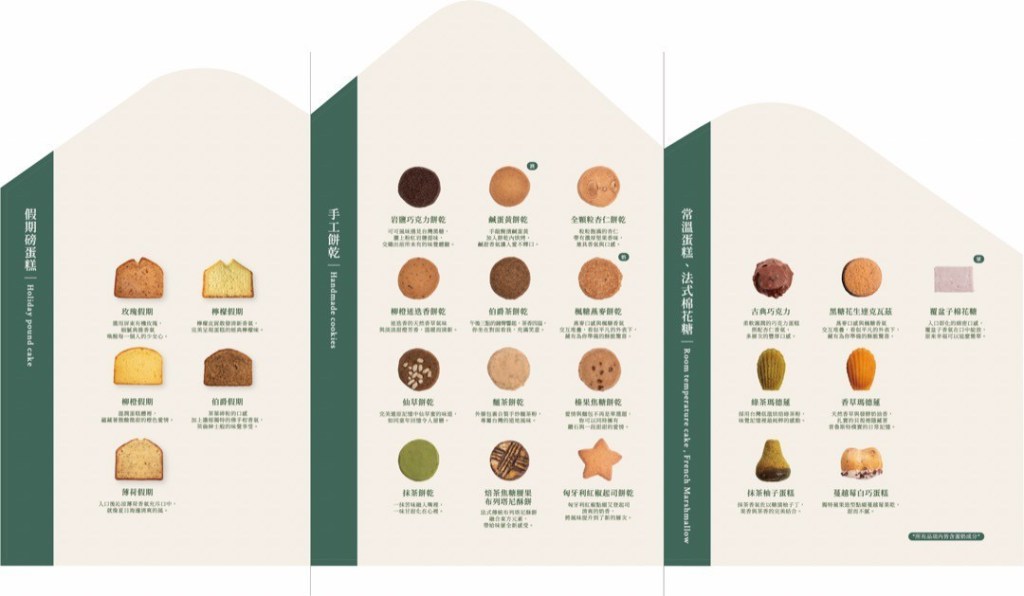 二月 • 森 烘焙工作室的喜餅禮盒,主要分成假期磅蛋糕、手工餅乾及常溫蛋糕、法式棉花糖系列!