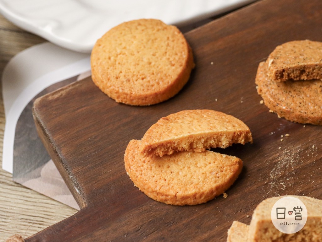 鵝黃色的鹹蛋黃口味,在本身是甜的餅乾多了一點鹹味,比起一般餅乾來說味道上更有層次🥰帶茶香的伯爵口味上面還可以看到茶葉的碎粒,愛茶系列的人絕對會忍不住一口接一口