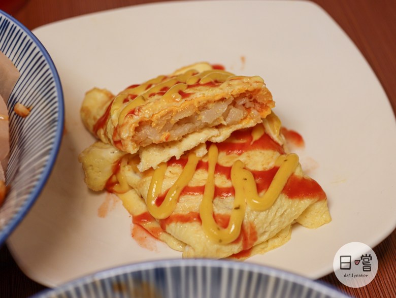 而弘爺漢堡的薯餅蛋塔也是他們家的招牌,酥脆的薯餅用滑嫩的蛋包著,淋上番茄醬跟蜂蜜芥末醬,吃起來外嫩內脆又酸酸甜甜的絕對是必點品項🤤