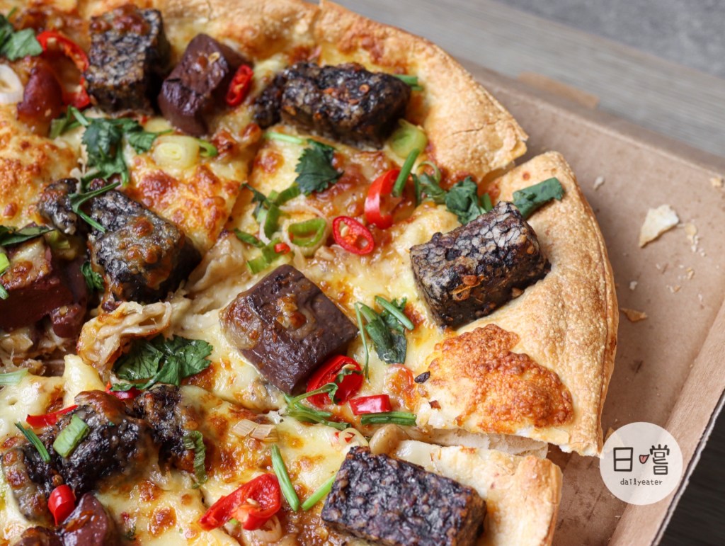 過去必勝客推出香菜皮蛋豬血糕披薩原本想嚐鮮,但因為皮蛋的關係還是有點抗拒!