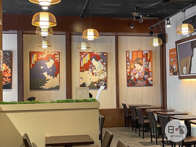 而牆上也掛著日式元素的畫作,黃色的燈打下去也很有在日本餐廳用餐的氛圍