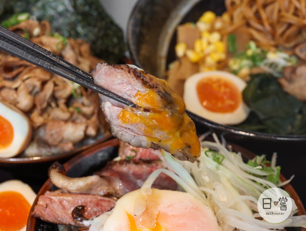 這款丼飯滿推薦可以加點顆溫泉蛋,蛋擺在飯中戳破它,把厚切牛排沾著蛋液吃更加濕潤也更好吃😋
