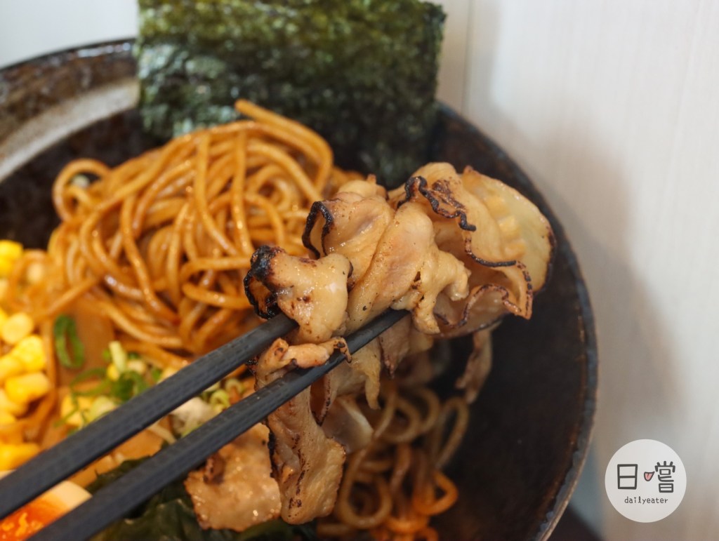 麵條的軟硬度剛好,而且每一根麵條都跟醬汁結合得恰如其分😋相較於湯拉麵吃到的叉燒,乾拉麵吃提供的炙燒肉片,搭配起來也是別有一番風味!