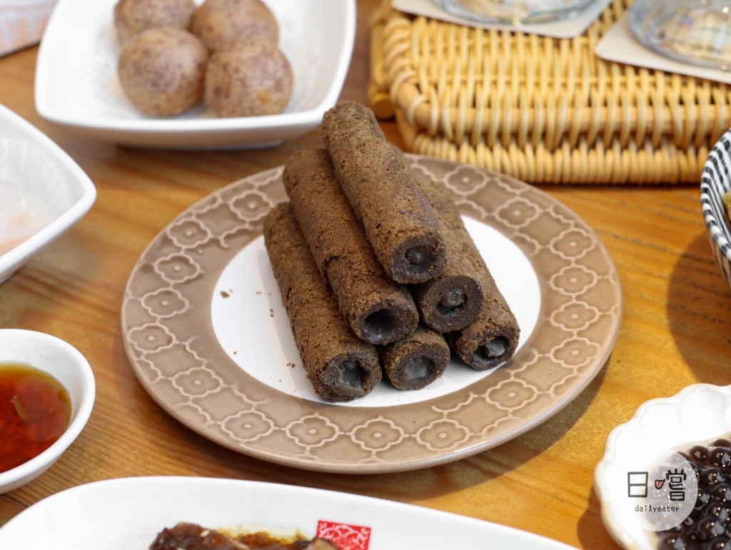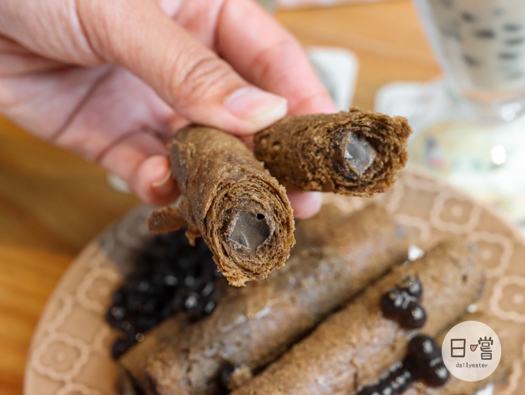 入口的時候就可以嚐到濃濃的茶香在嘴裡,吃到後面內餡因為嘴巴的溫度稍稍融化所以還帶有奶味!特別加點了春水堂的珍珠,淋在蛋捲上又是一番視覺饗宴🥰