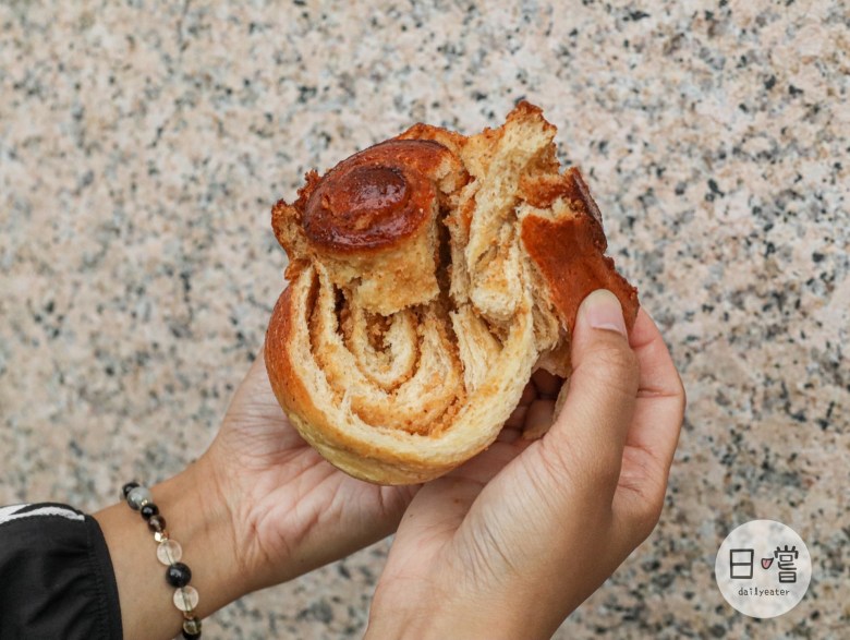 與過去看過的花生捲不同,不是麵包體成螺旋狀的外觀而是圍成一圈圈的肉桂捲形狀😆重點是每一層都有滿滿的花生香,吃下去也不會覺得太甜膩👍🏼