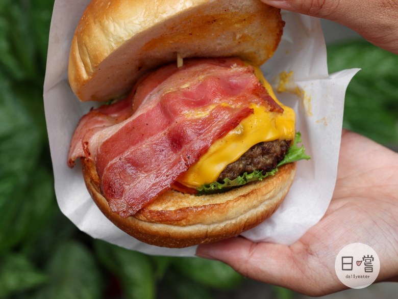 一看到培根漢堡食慾馬上大開,粉紅色的培根同時還有融化的起司在和牛漢堡排上,這個畫面是多麼的誘人🤤在打文章的過程,看這照片肚子真的很餓😂