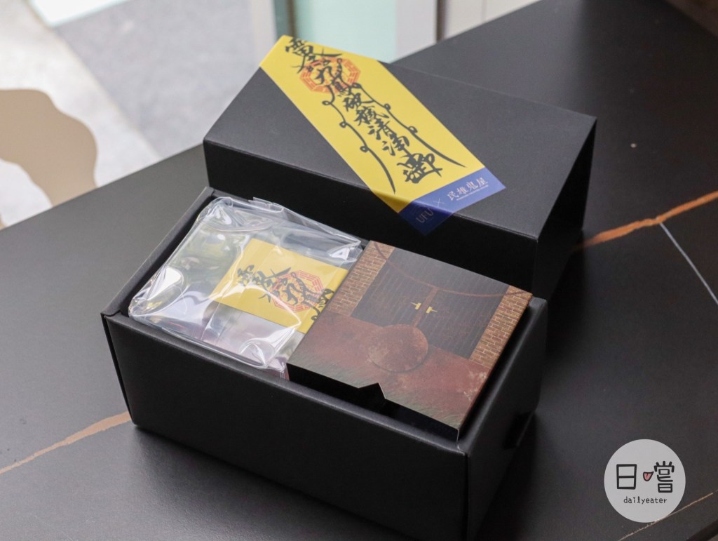 打開盒子裡除了有聯名的古井蛋糕外,還有籤詩、小鏟子、電影票跟古井蛋糕附的法芙娜巧克力醬!電影票有分成雙人跟四人的組合,或是害怕看鬼片只想吃驚悚的古井蛋糕也有單賣的選擇