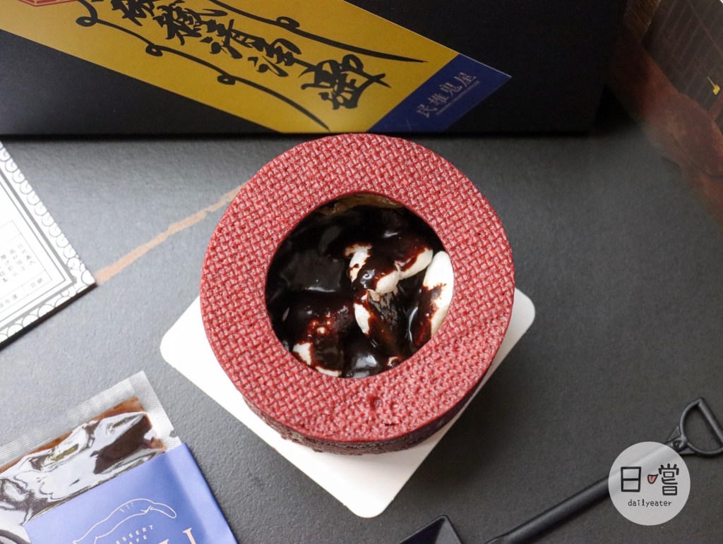 這次烏芙跟電影民雄鬼屋聯名的禁忌古井蛋糕,完全打破了對甜點的想像😍沒想到戚風蛋糕也可以變成這樣的造型!以伯爵作為蛋糕的主體,裡面還有黑巧克力做為古井裡的醬,整體吃起來是很濕潤的一款甜點👍