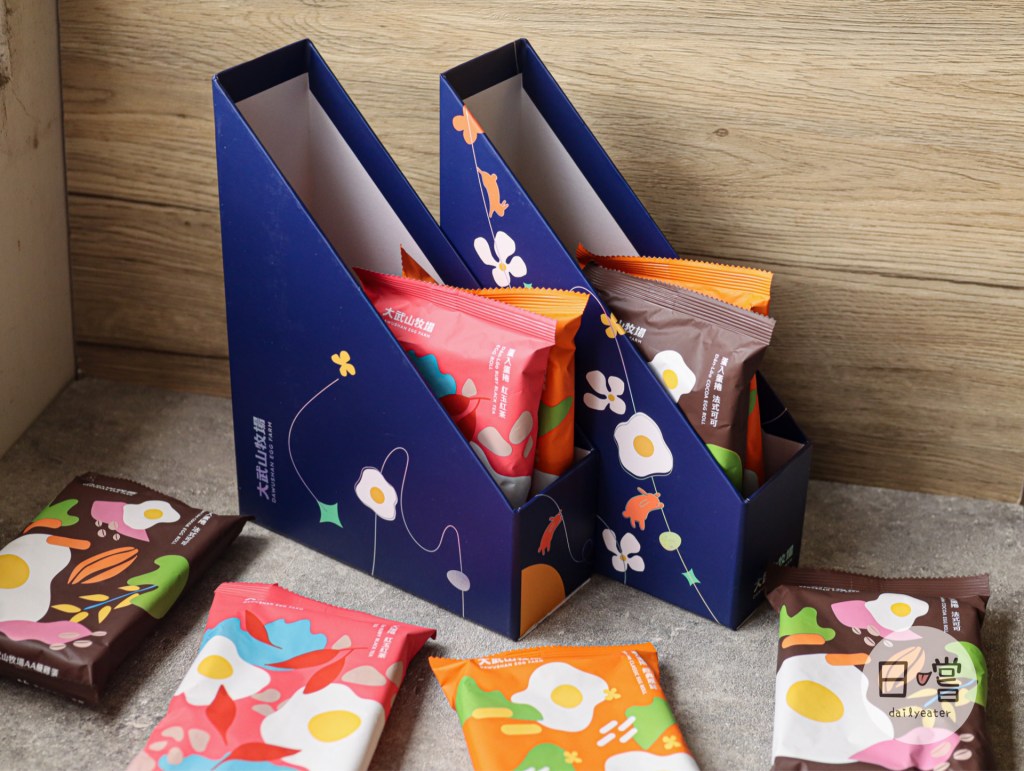 而且新推出的中秋禮盒,還可以把外殼變成書架、收納架,讓消費者在吃完蛋捲後,剩下的包裝還可以拿來「再利用」。可以把還沒打開的蛋捲放進去,或是家裡的書、雜誌等生活用品也可以放在裡面收納👌處處都可以感受到大武山牧場對於環境的保護十分盡心
