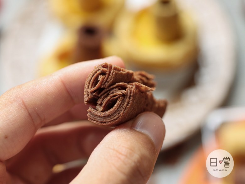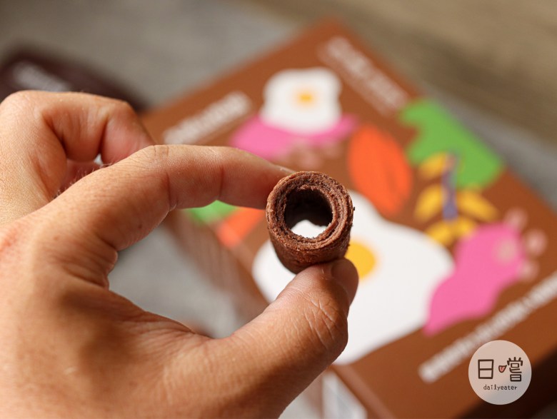 在可可的香氣中,可以吃到一些微苦的濃醇感!法式可可蛋捲給人一種苦甜的大人味,不會像有些可可帶給人很死、很化學的可可味,這款法式可可蛋捲反而給人一種很自然、很純粹的可可味😆