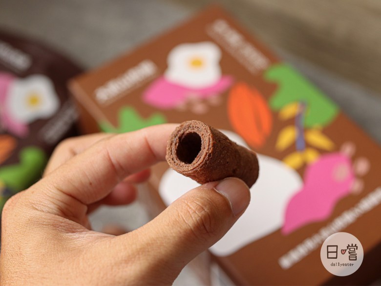 而使用了大武山牧場的雞蛋,每種口味的蛋香都格外的明顯!經典原味一口蛋捲最能吃出濃濃的蛋香;紅玉紅茶蛋捲的蛋香跟茶香兼具,兩者交織猶如紅茶那回甘的滋味一樣迷人;法式可可蛋捲則是散發出微苦甜的大人味!三種口味每一種都越吃越刷嘴,而且也完全不會有掉屑的問題👌