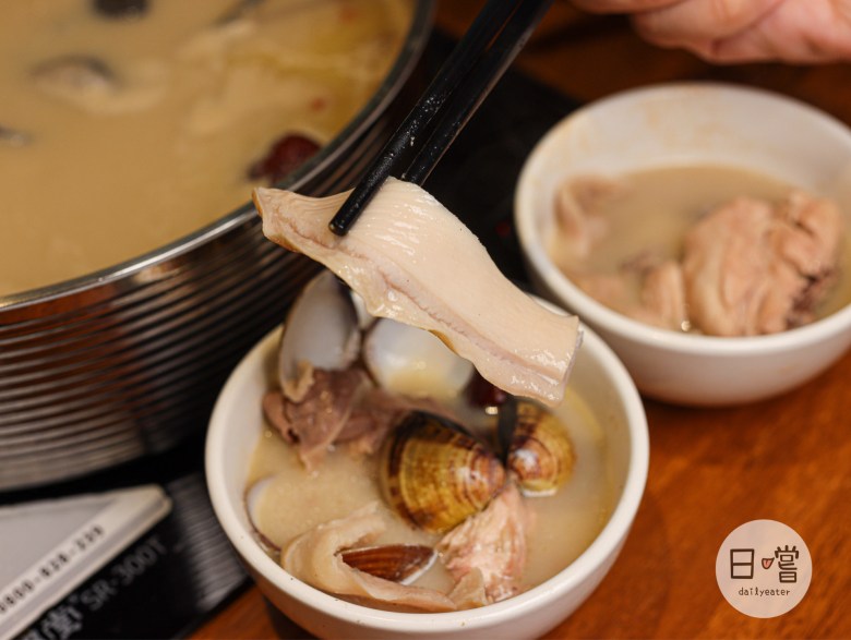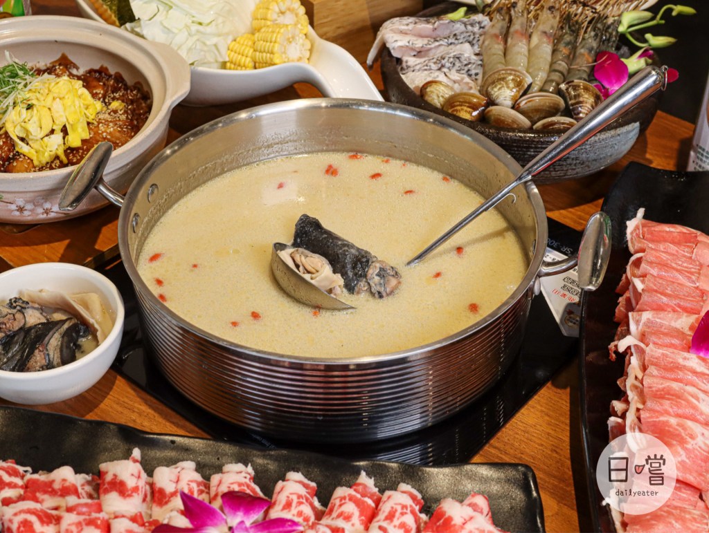 隨便一勺湯就可以看到有滿滿的烏骨雞、仿土雞跟豬肚,配料上來說可以說是誠意滿滿👍火鍋肉質也都是比外面小火鍋的肉還要更有升級感,海鮮下鍋時更為那湯頭更增鮮甜感,蔬菜最後下去可以說是完美的一餐😍