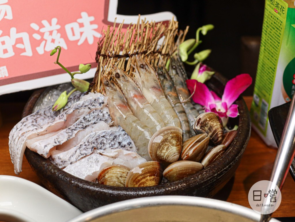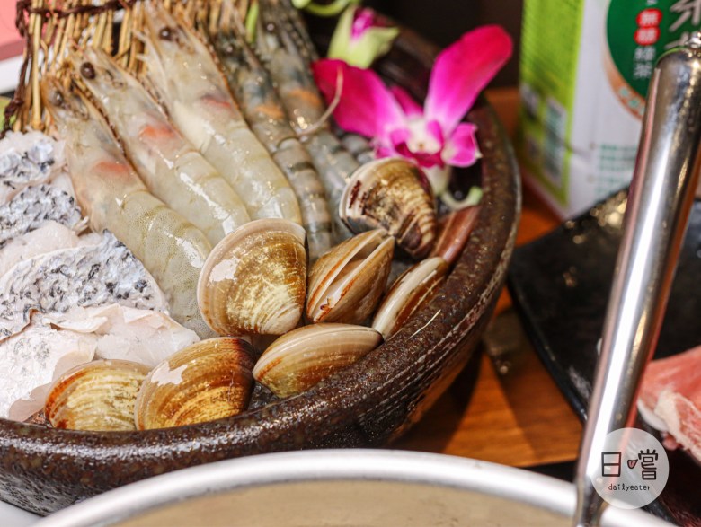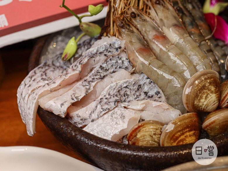 雙人套餐的部分,除了前面的鍋物、肉品,愛吃海鮮的人一定會覺得很幸福😋因為套餐還有附上藍鑽蝦、草蝦各三隻,蛤蜊八顆😍另外還多點了一份鱸魚片,在餐點的變化上可以說是滿彈性
