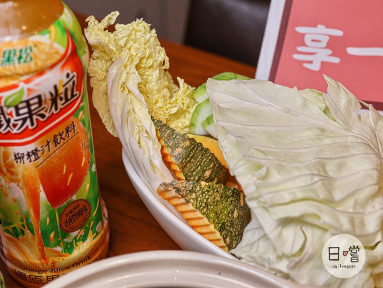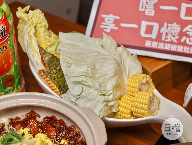 綜合菜盤裡以高麗菜、白菜、南瓜跟玉米為主,少了火鍋的丸子、餃子覺得還滿不錯的!因為有煮過海鮮的關係,原本的胡椒豬肚雞又多了點鮮甜,當青菜下鍋煮後更能吸收到湯汁👍
