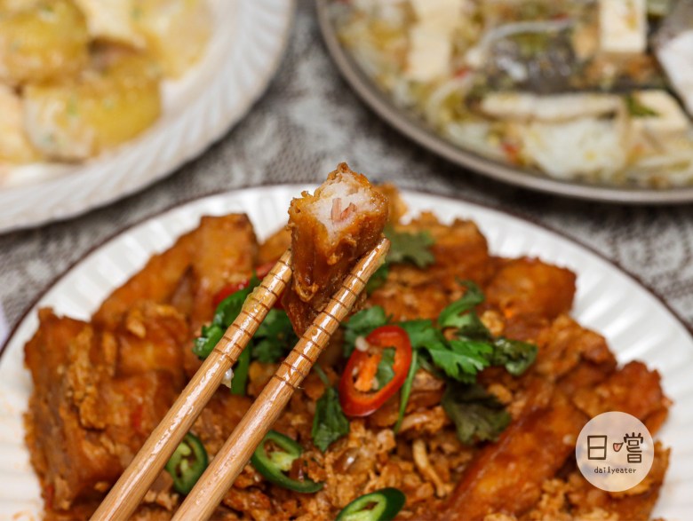 咬下去外脆內軟的口感,當天吃到的每個人都對這道菜讚不絕口😆如果想要辣度更明顯一點的話,也可以搭配上面的辣椒一起吃!炸得金黃、咬下去綿密的蘿蔔糕體,還能吃到一點花生碎,不用吃飯單吃這道料理就讓人有種滿足感😍