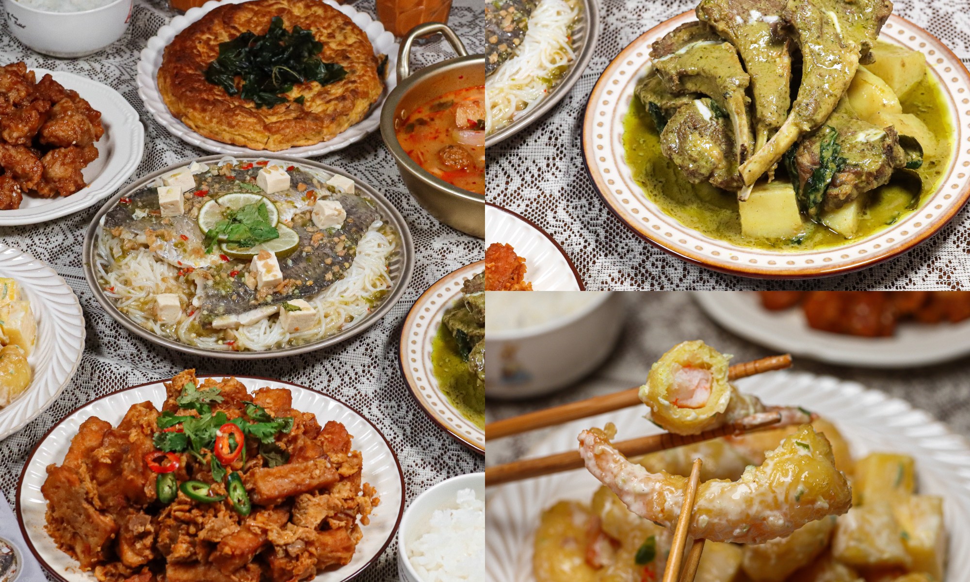 這次推出的年菜組合是六菜一湯,分別是蒸蒸日上年年魚(檸檬魚米線)、福氣旺來蝦蝦叫(鳳梨蝦球)、羊眉兔氣歲歲安(綠咖哩羊小排)、金兔迎春滿滿福(打拋豬烘蛋)、大雞大利久久長(糖醋炸雞)、紅運彩頭步步糕(紅咖哩蘿蔔糕)跟豬事大吉事事圓(冬蔭豬肉丸湯)