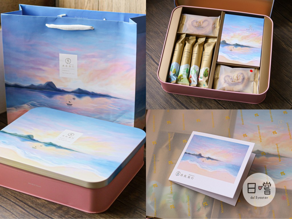不得不稱讚每次吃青鳥旅行的禮盒都覺得包裝設計的很好看,從之前年節的虎年禮盒到春水堂珍奶蛋捲包裝,這次愛情海洋綜合餅乾禮盒走的則是一個很唯美的畫面!