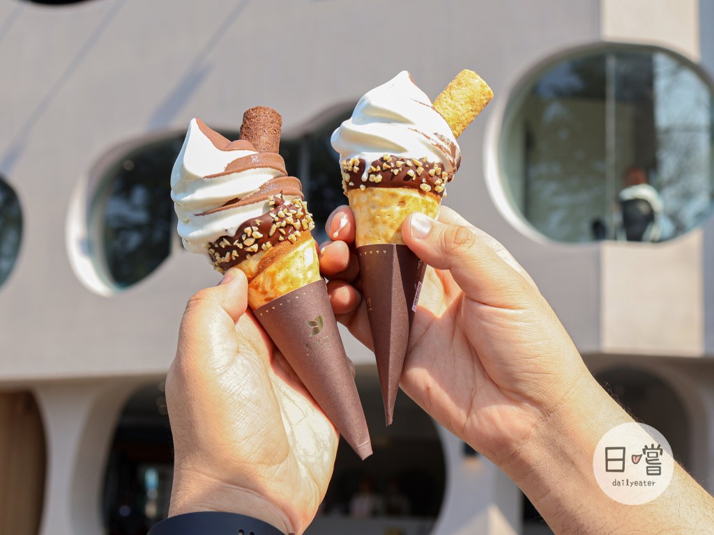 而新推出的蛋捲霜淇淋,從餅皮製作過程就讓人口水直流😂尤其餅皮還多加了巧克力醬、脆片,這些小細節都讓人覺得很美很精緻!搭配濃郁的北海道牛奶霜淇淋、苦甜感的巧克力霜淇淋,還有自家的蛋捲可以說是完美結合