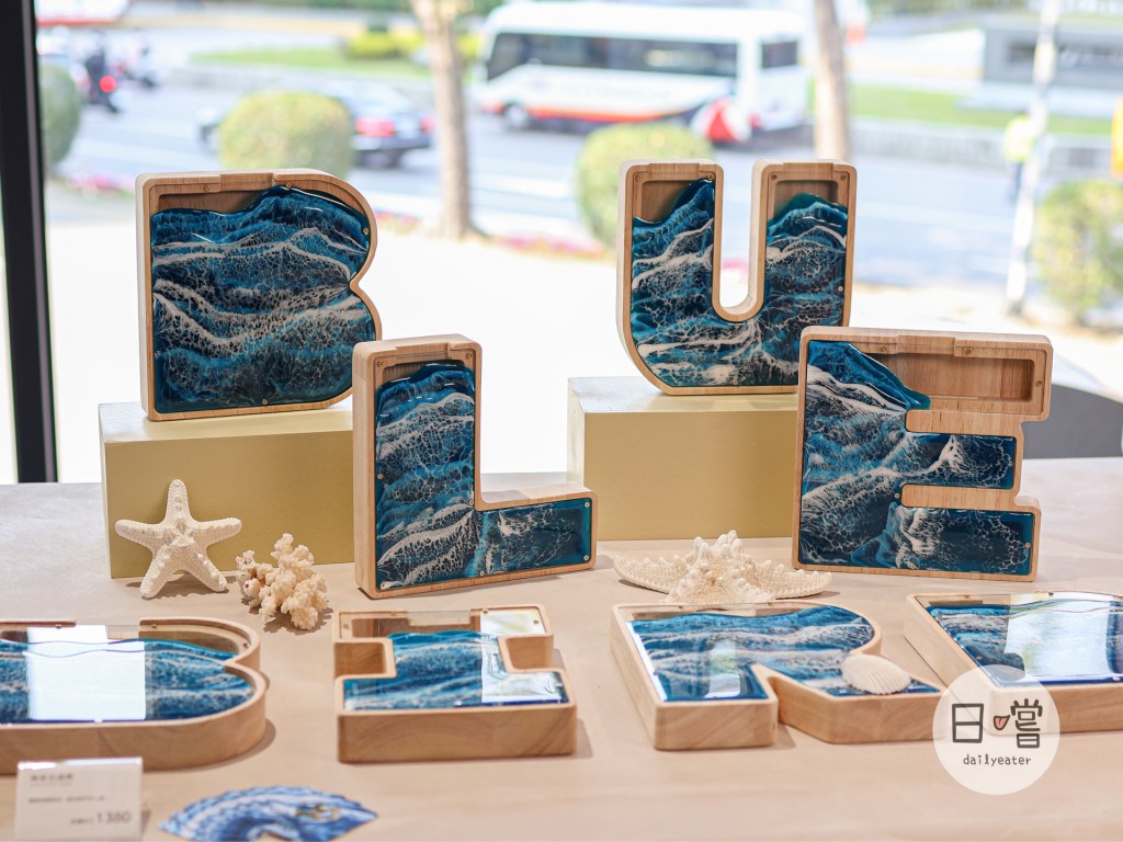 現場除了蛋捲還有以《怕海》的主題所設計英文字母存錢筒,現場展示著青鳥旅行的英文,BLUE BIRD,如果想要一組屬於自己英文字母的存錢筒也有提供販售😍
