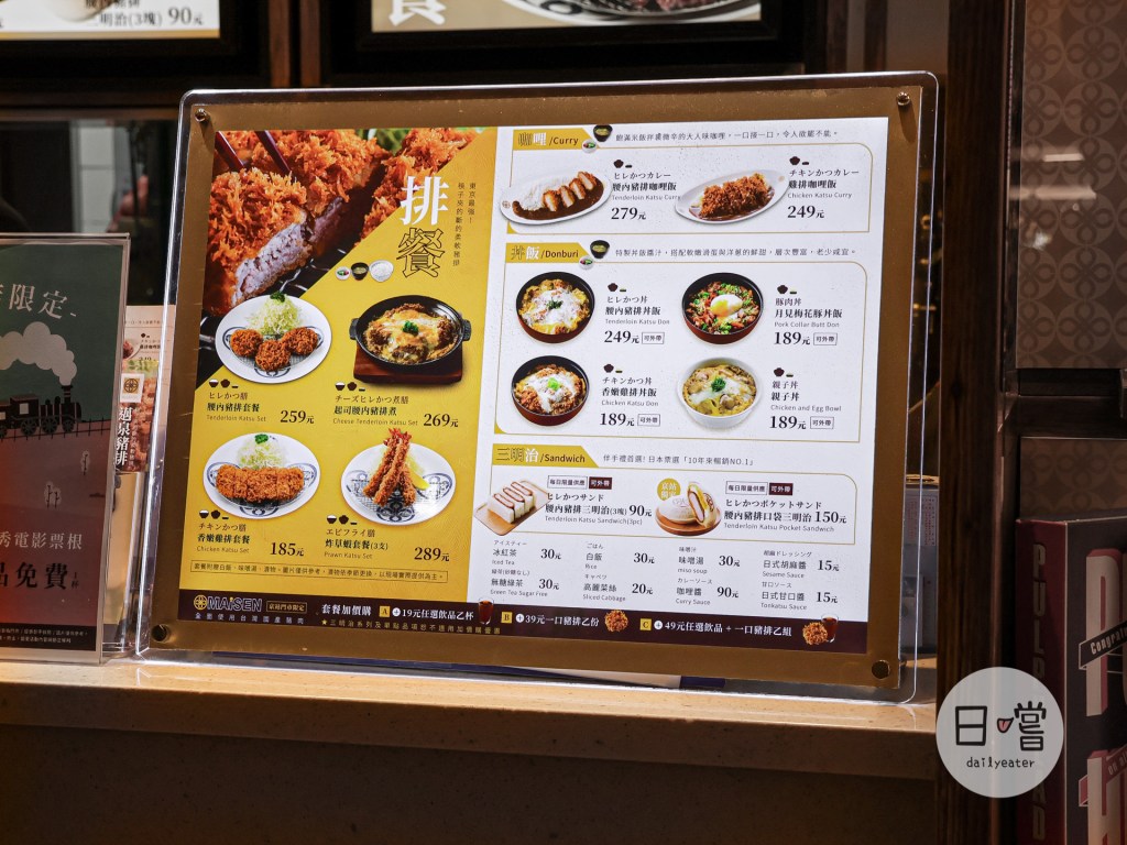 除了三明治在邁泉豬排 EXPRESS店面也有販售排餐、咖哩跟丼飯類,無肉不歡的朋友選了有豬界菲力之稱的腰內豬排套餐,三塊腰內豬排還有高麗菜絲、胡麻醬跟豬排醬