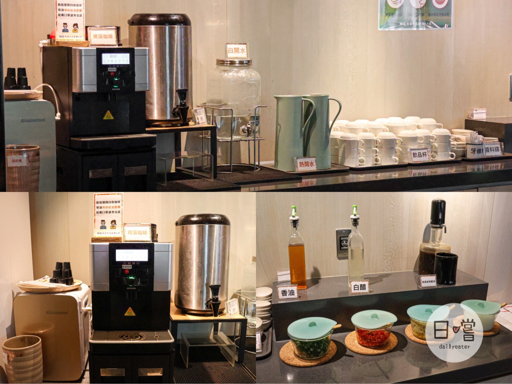 Hi-Q褐藻生活館x鱻食的一樓是生活館,而地下一樓則是Hi-Q鱻食火鍋~自助吧主要提供一些茶水、火鍋的醬料,滿特別的是這裡還有提供褐藻金桔醬油!店員在介紹的時候特別提到,不管是沾肉或是沾海鮮都很適合👌